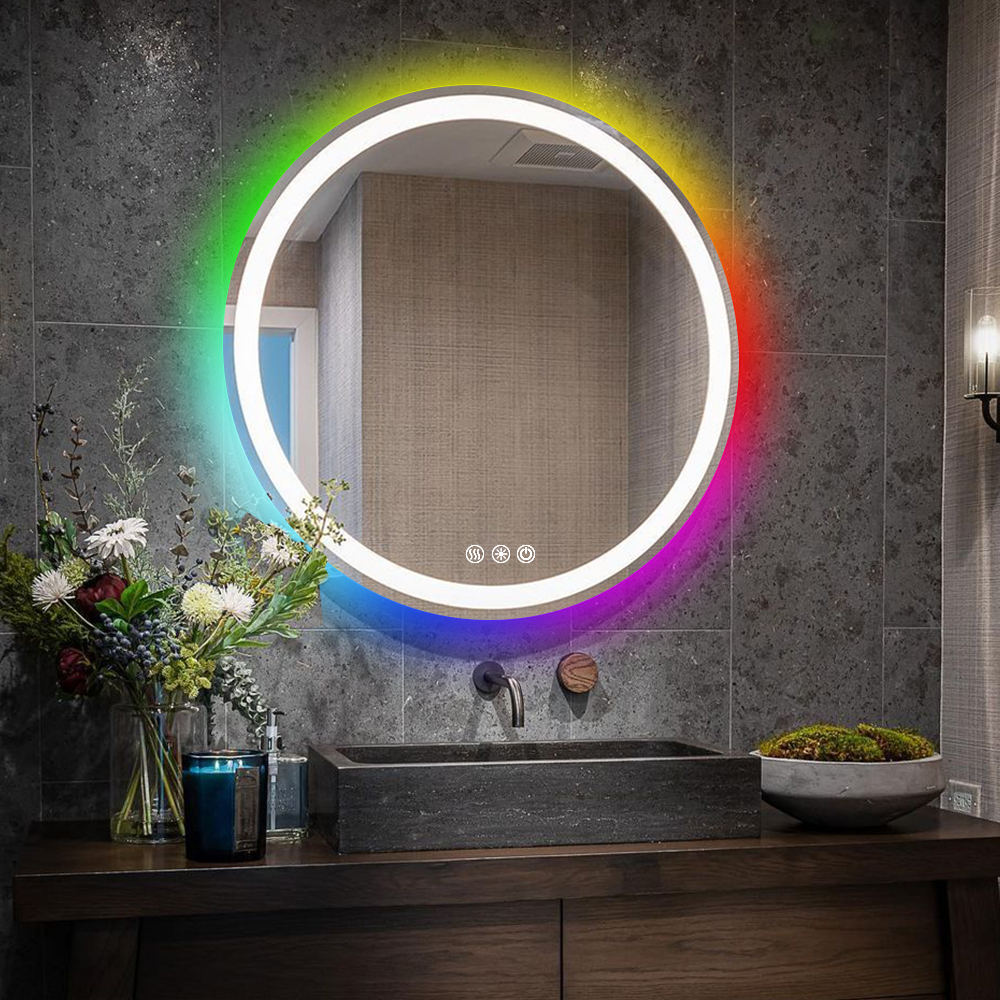 Color Changing Backlit Anti Fog Round Bathroom Mirror | |||